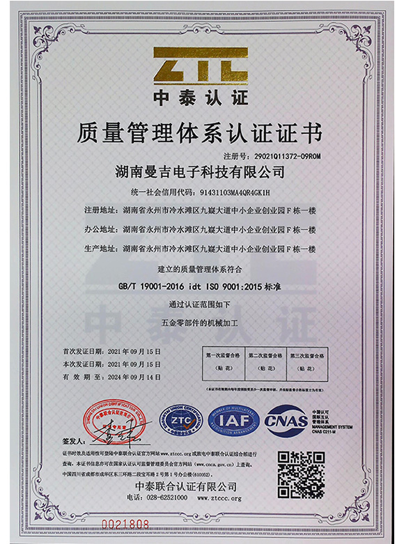 湖南曼吉电子科技有限公司是由深圳市富鑫精密五金技术有限公司全额投资在永州的分厂,公司生产面积8000多平方米,公司现有人员180余人,主要设备有CNC加工中心,数控走刀机,数控走芯机、铣床、钻床等。我公司配备经验丰富技术过硬的专业团队,能广泛满足用户各种高精度、高难度的加工要求。以精益求精、追求卓越品质为发展目标。生产过程的每道工序都经过严格的质量控制,对交付用户的产品质量完全负责。湖南曼吉电子科技有限公司将以优惠的价格、快捷的速度、良好的服务向顾客提供满意产品,并支持免费打样、送货上门,为客户创造更高更快益。愿与客户建立长期的合作关系!